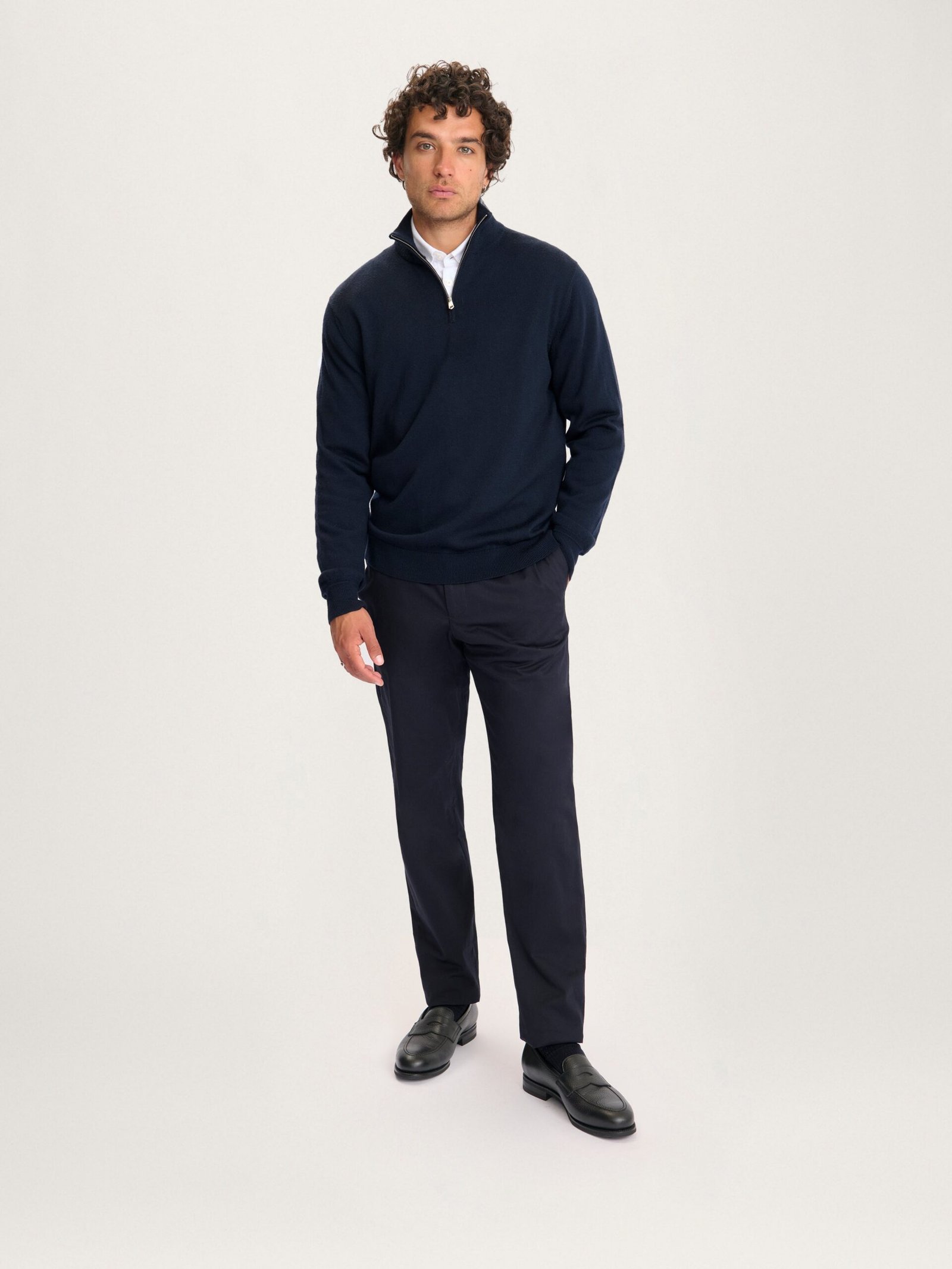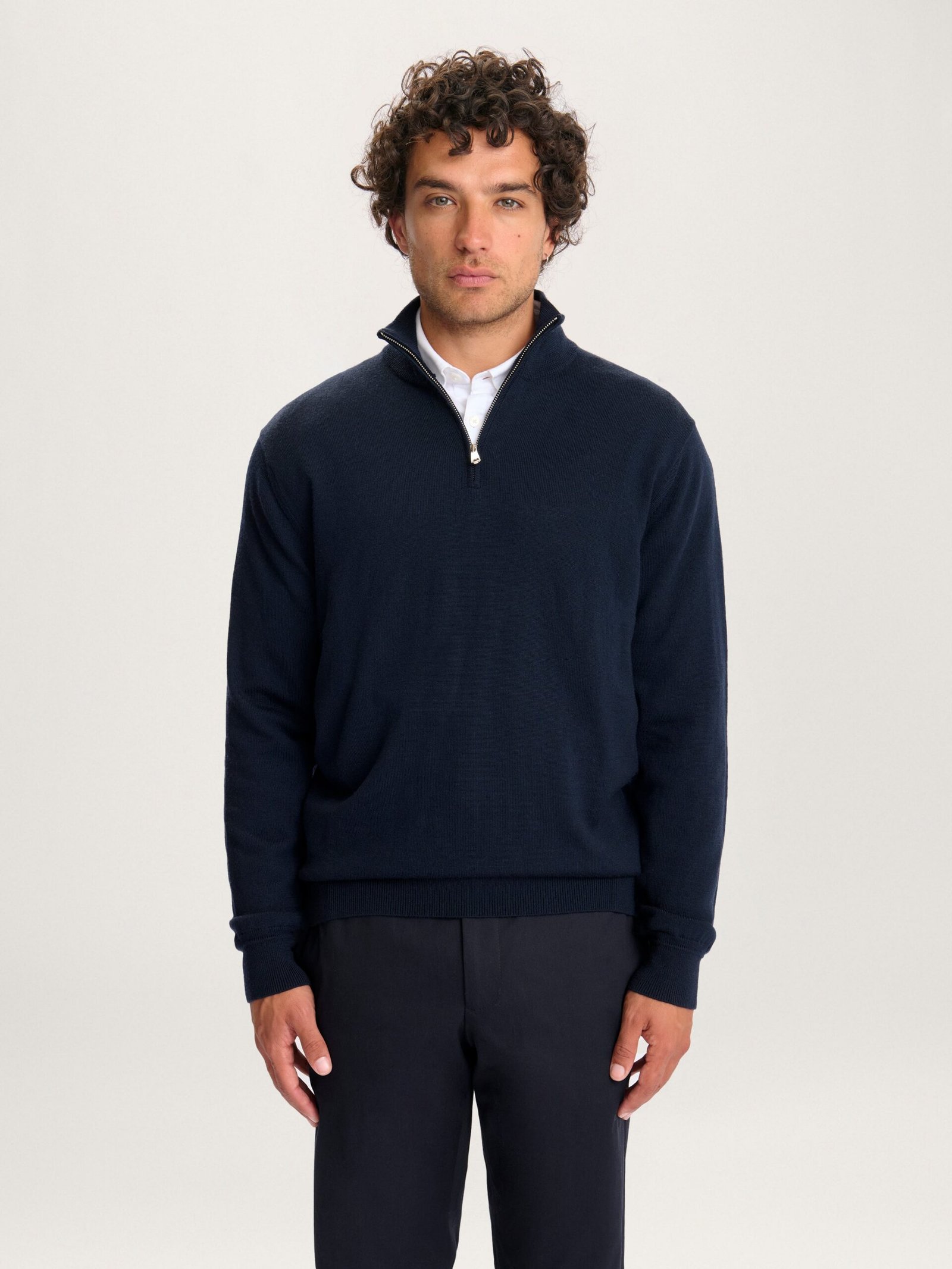 The Half Zip Knitted Sweater offers a refined blend of style and functionality, crafted from 100% extrafine merino wool with a 17-micron fibre diameter. Designed with a compact Milano stitch for durability and structure, it features fully fashioned construction for a seamless, clean finish. The 14-gauge knit ensures a lightweight yet insulating layer, making it perfect for year-round wear.