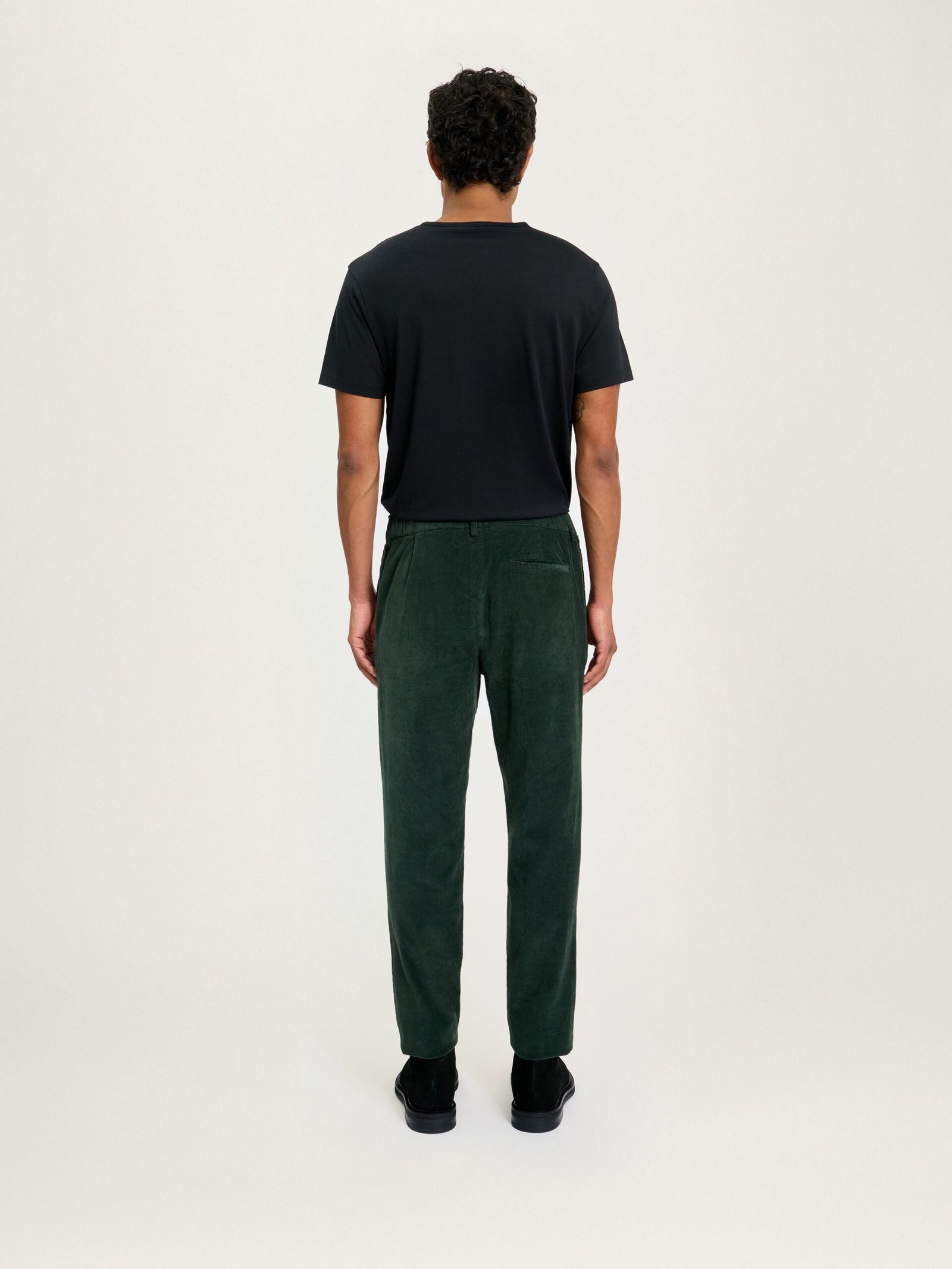 An elegant and sophisticated trouser crafted from soft, GOTS Certified Organic Cotton with added stretch, woven by the makers of some of the finest corduroy fabrics in Italy. Understated in design, yet statement by quality and construction. Designed with a hidden elastic waistband with belt loops for comfort and a tailored finish.