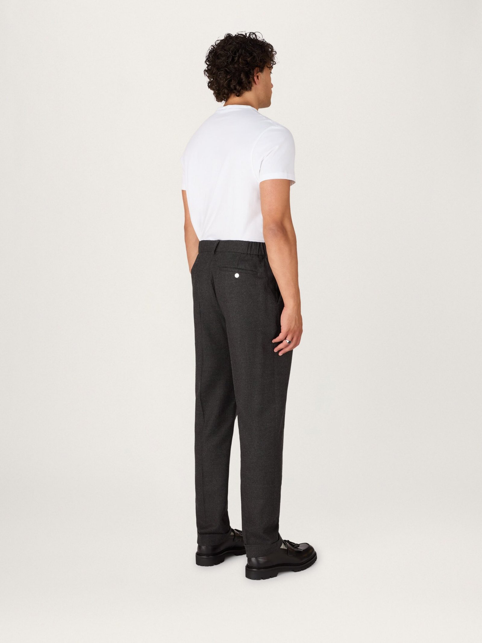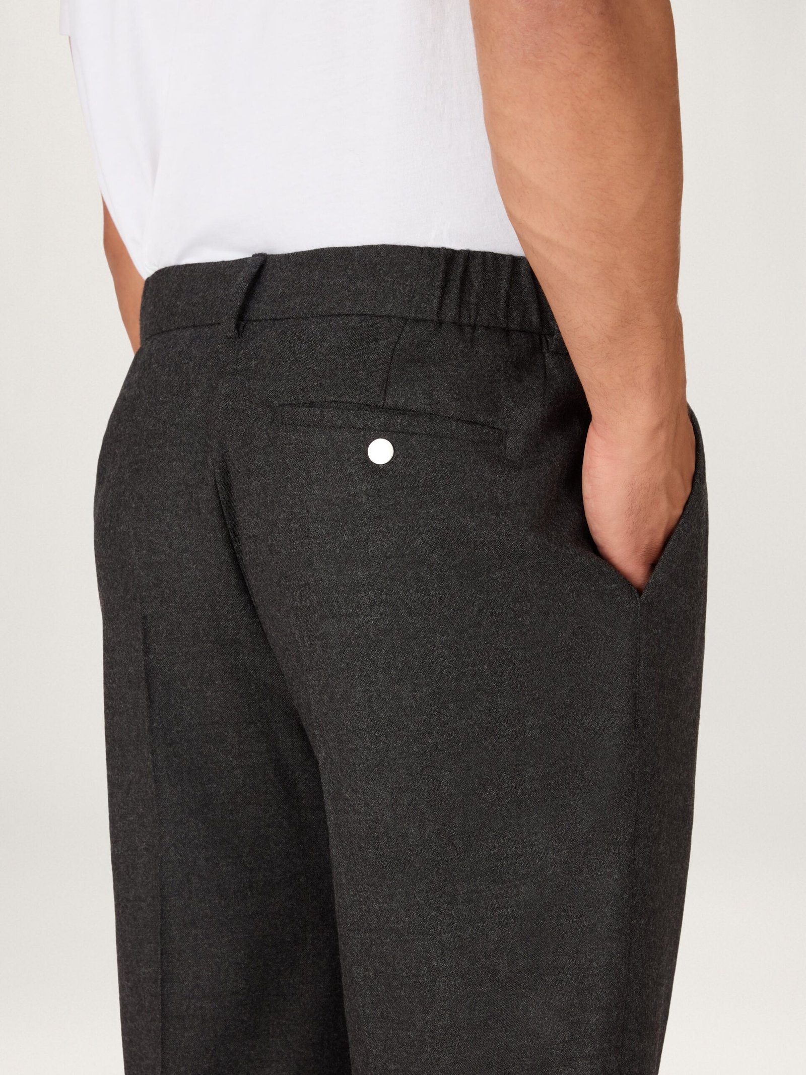 Our bestselling, signature trouser that combines sweatpant-level comfort with fine tailoring. A modern take on the classic trouser with a hidden elastic waistband and premium drawstring cords. Crafted from exceptionally soft and fine 17 micron Australian merino wool, woven in Italy for luxurious comfort. Cut with a relaxed, roomier leg with a gentle taper towards the ankle.