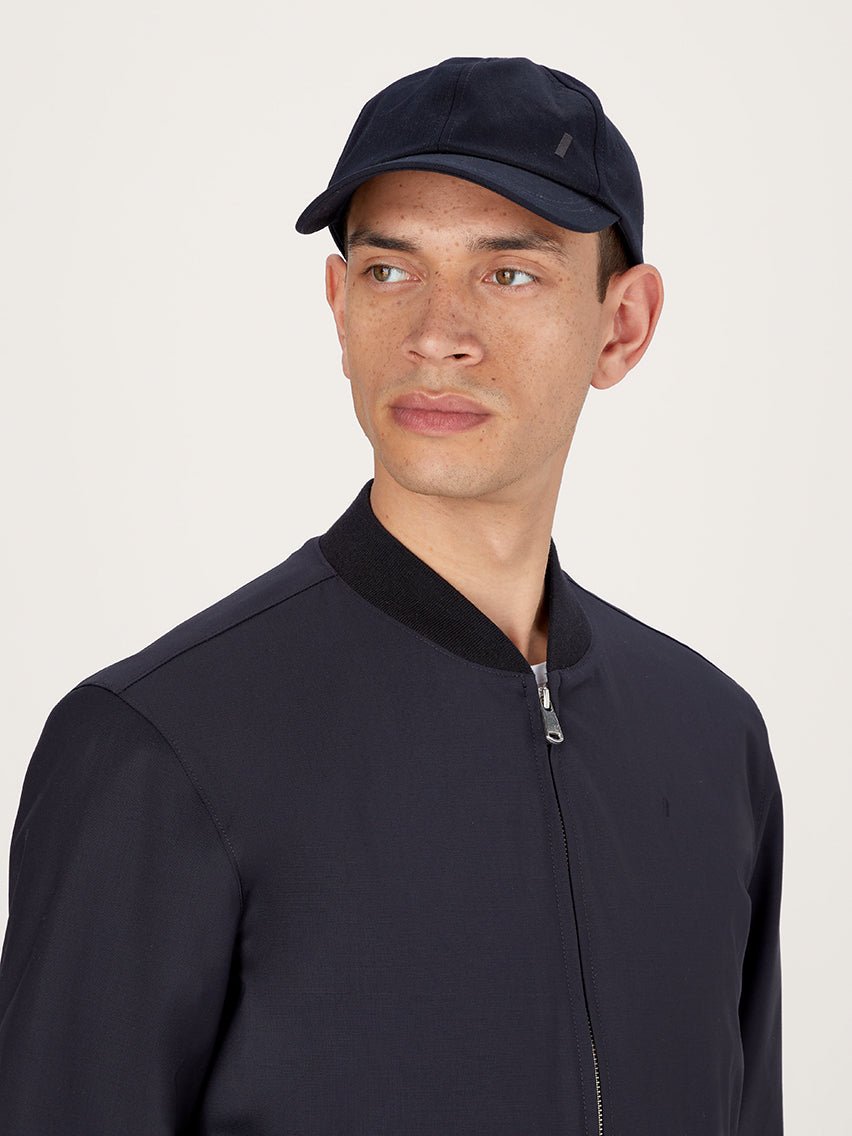 The minimal Hydrowool Bomber Jacket in Navy