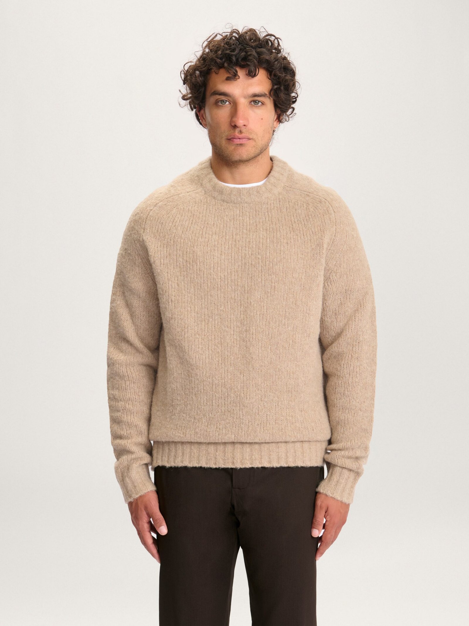 The minimal modern Alpaca Crewneck Sweater in Oatmeal