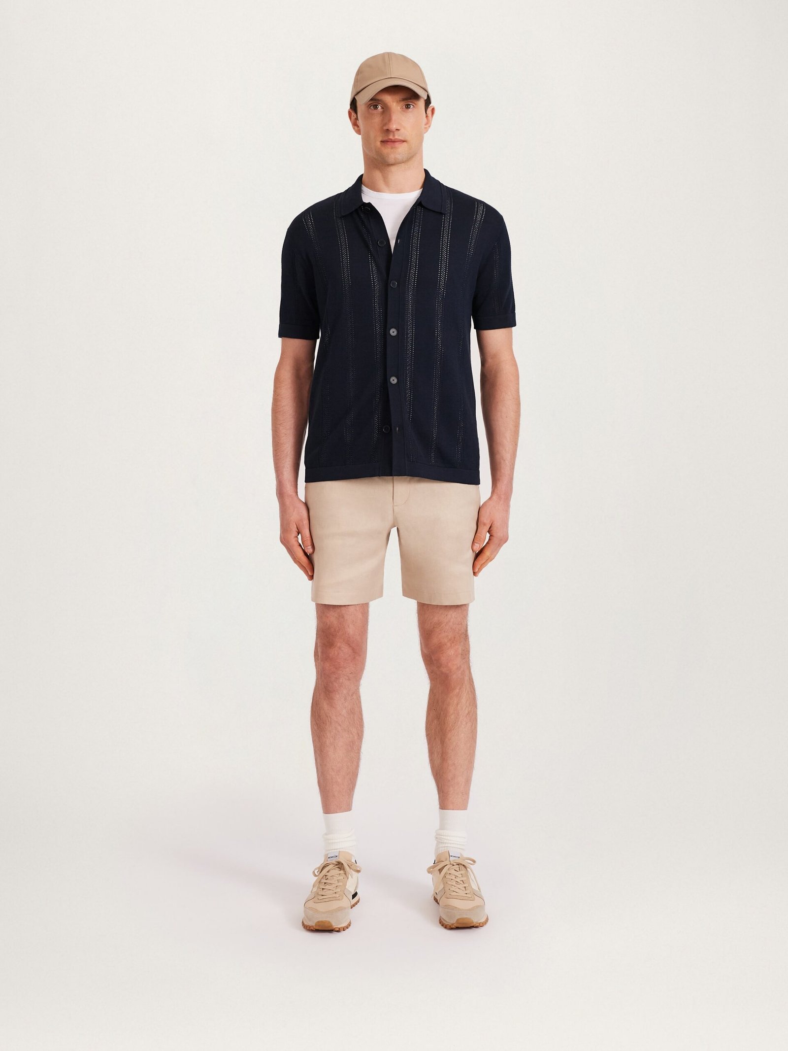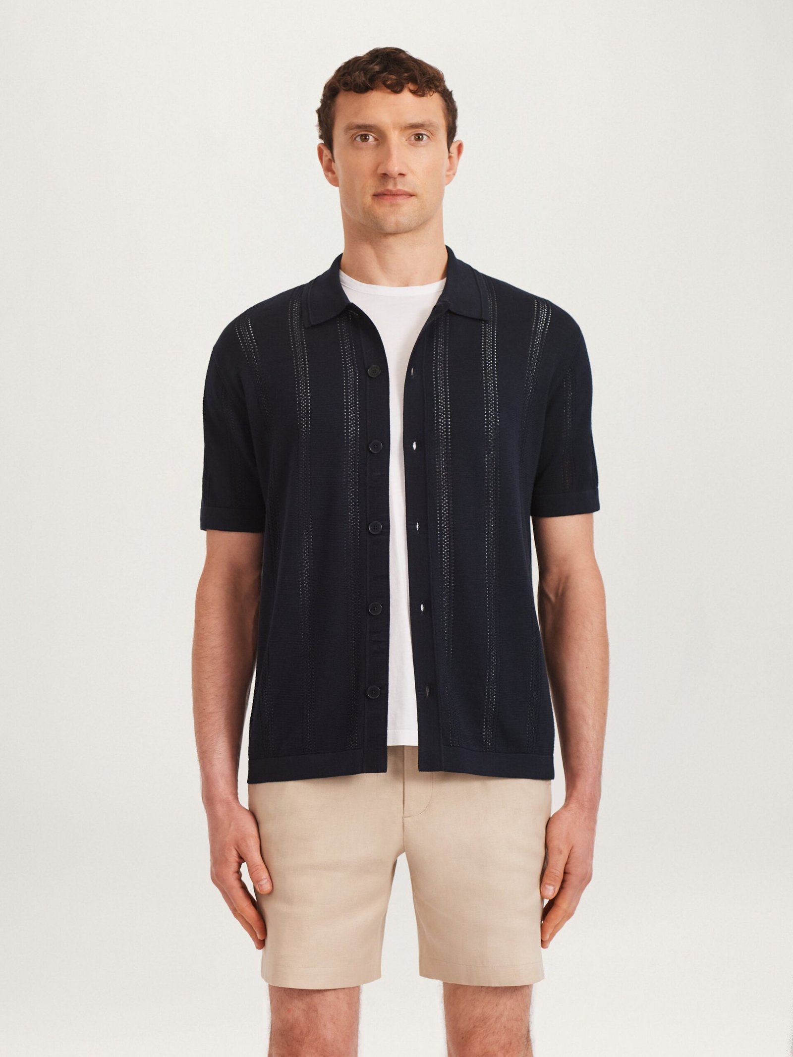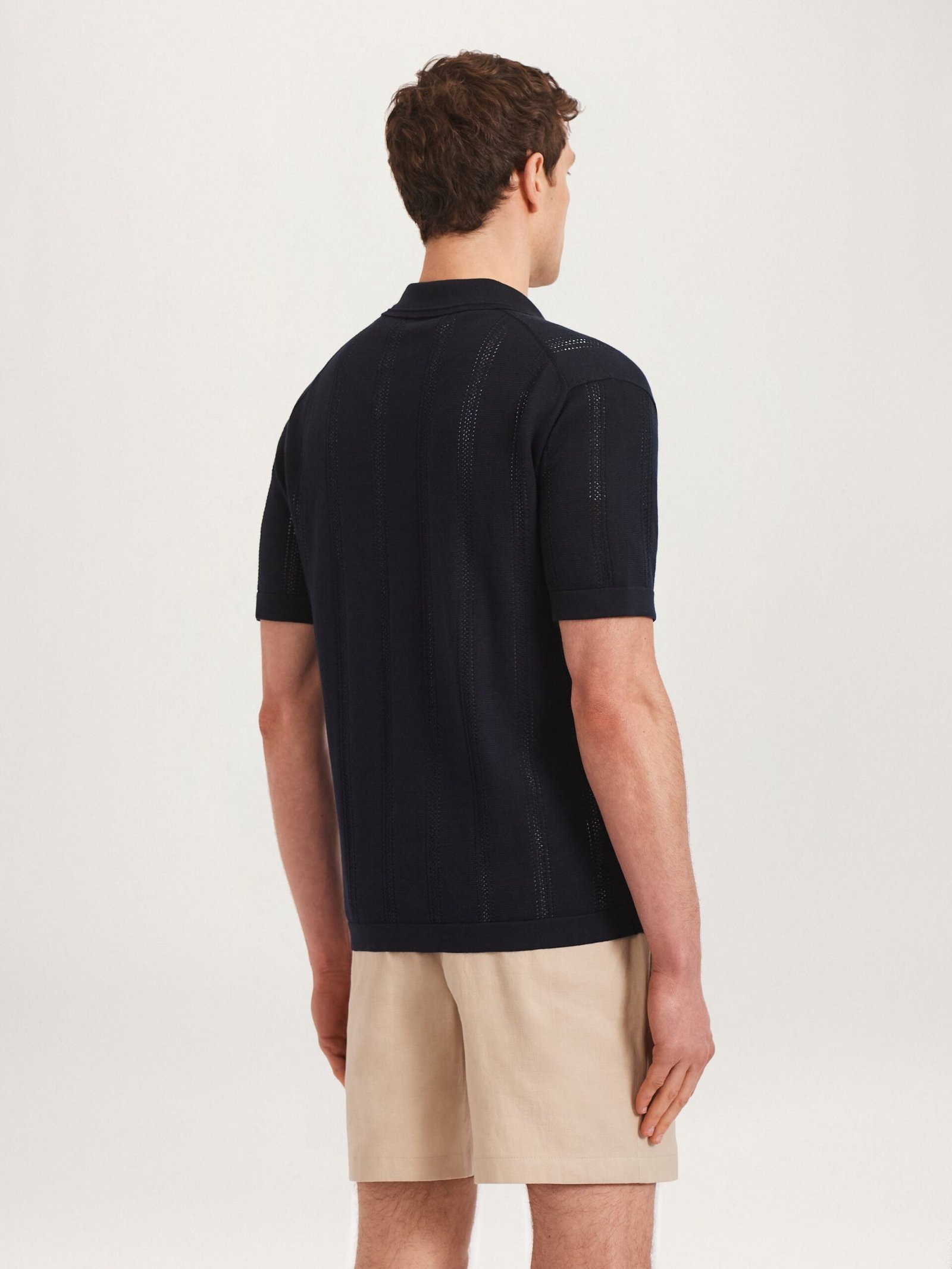 A short-sleeve buttoned knit shirt crafted from a superfine, 100% certified organic cotton. Designed with a distinctive, five-stripe pointelle design for subtle texture and elegance. Wear with the Essential Chino or a pair of 12 shorts for a versatile piece that can be dressed up for a warm evenings or dressed down for holiday relaxation.
