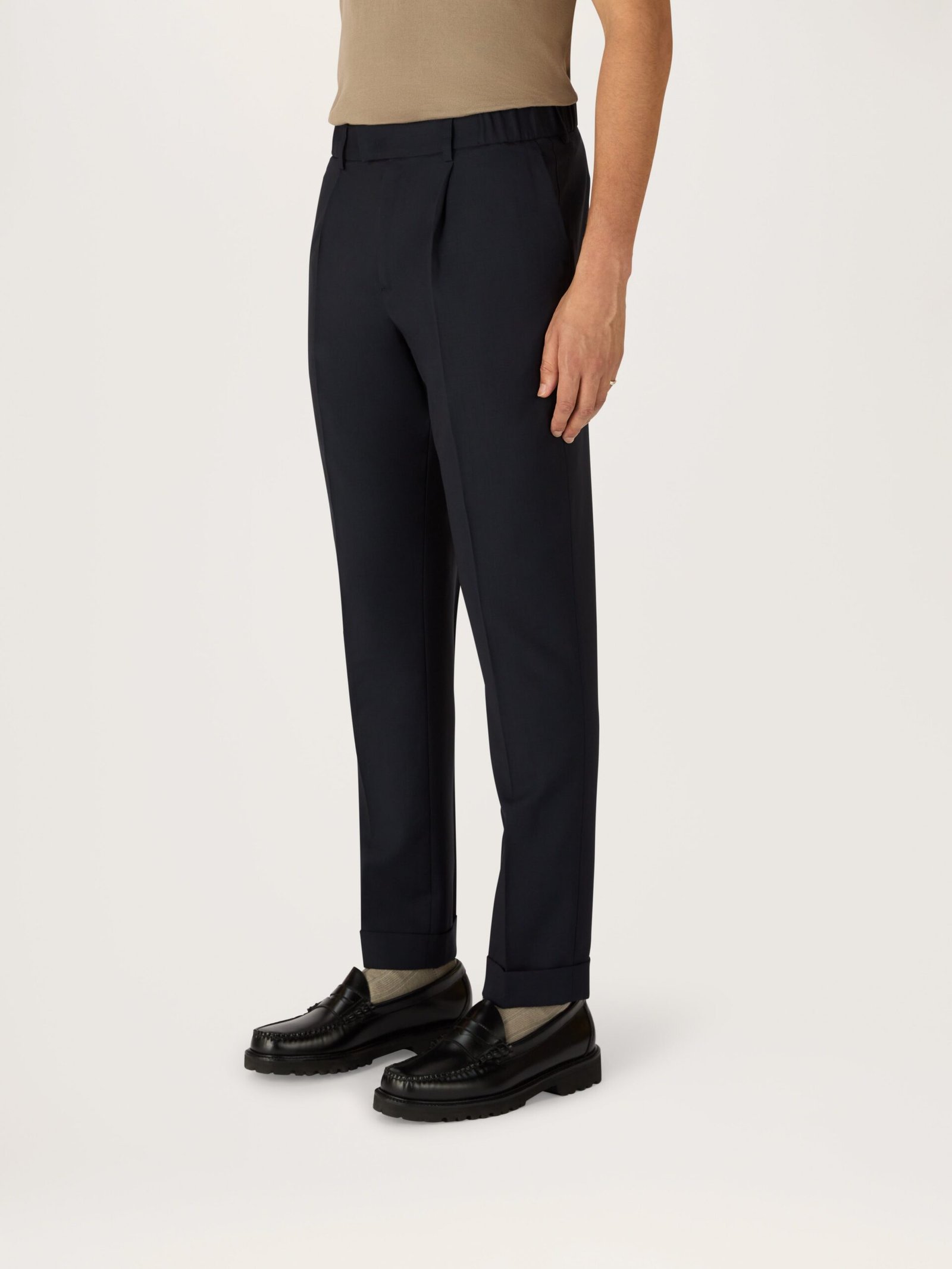 Our bestselling, signature trouser that combines sweatpant-level comfort with fine tailoring. A modern take on the classic trouser designed with a hidden elastic waistband and premium drawcords for comfort disguised in a pair of smart trousers. Crafted from a luxurious, lightweight Italian-woven fabric made from airy Australian merino wool that offers high levels of breathability in tropical and balmy climates. Designed with a sartorial update featuring a pleat down the front of the leg and a cuffed hem. Pair with the Tropical Wool 24 Blazer.
