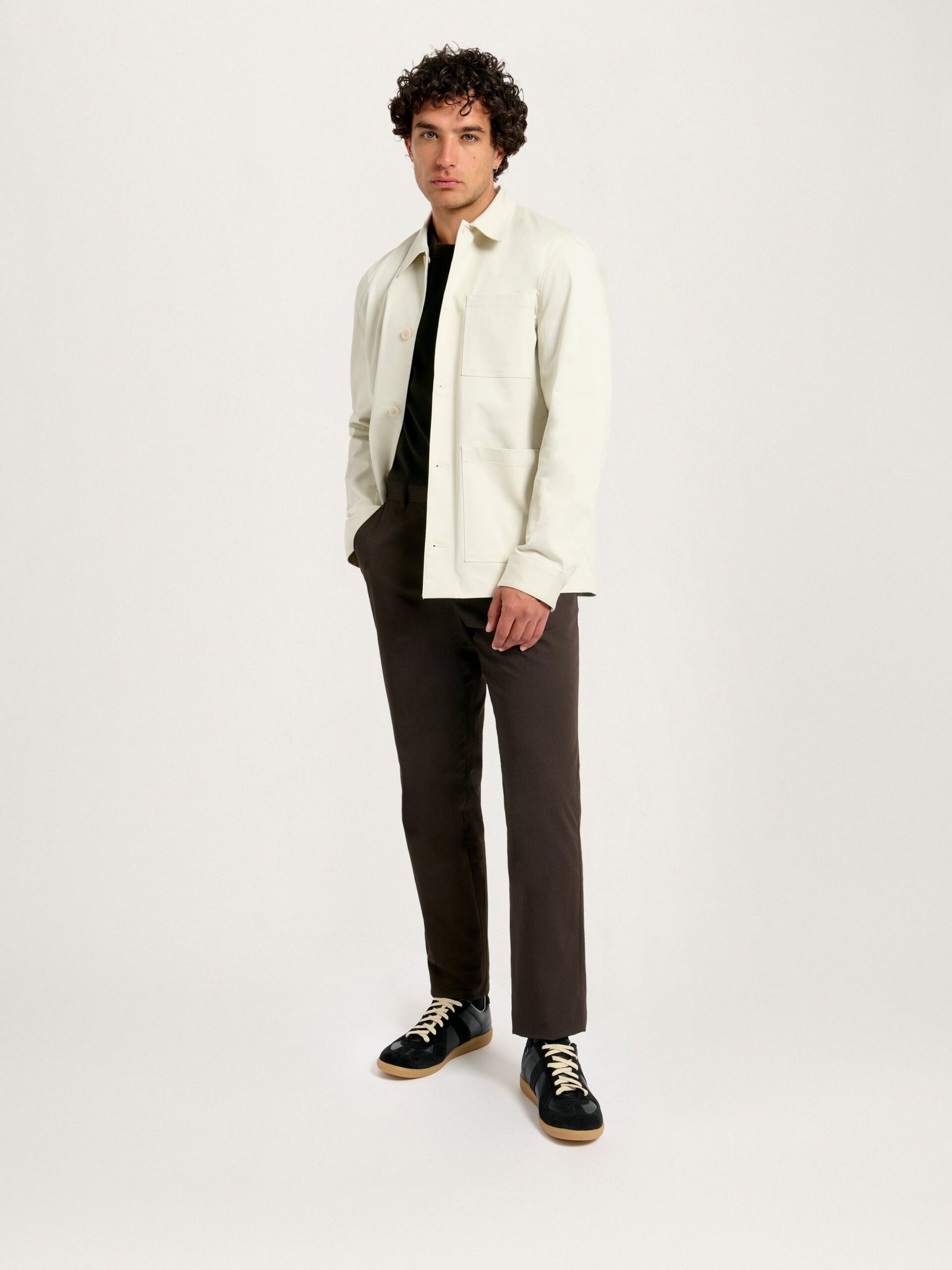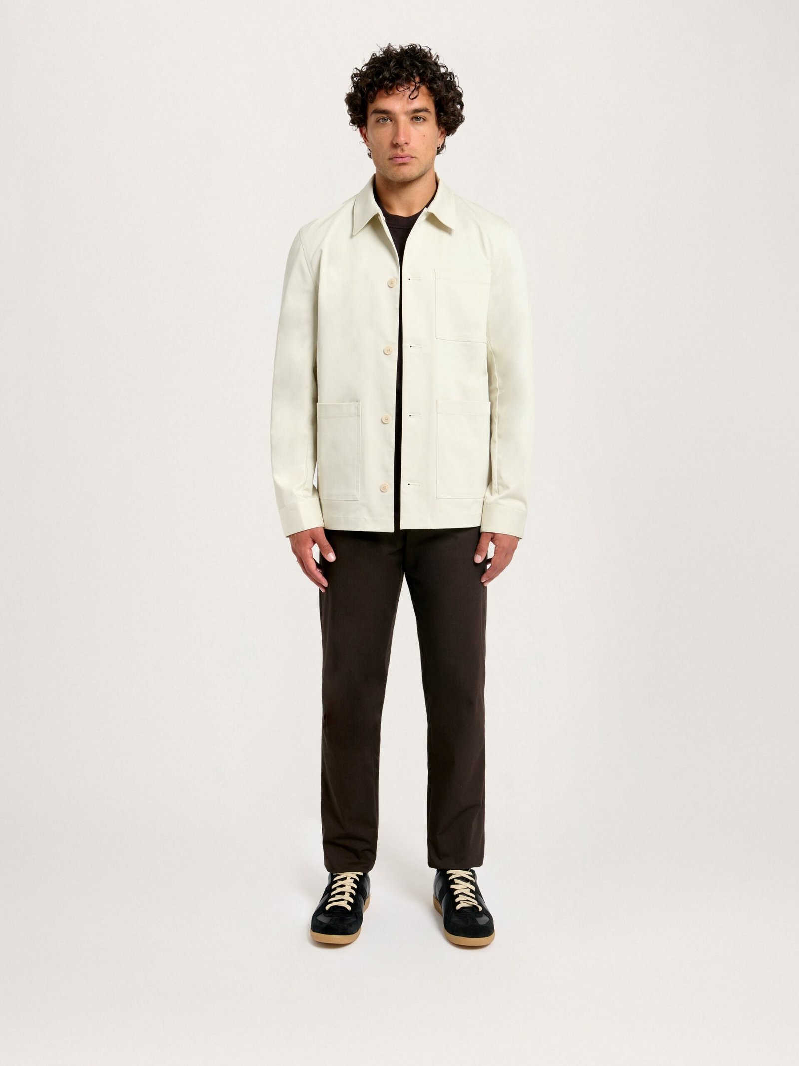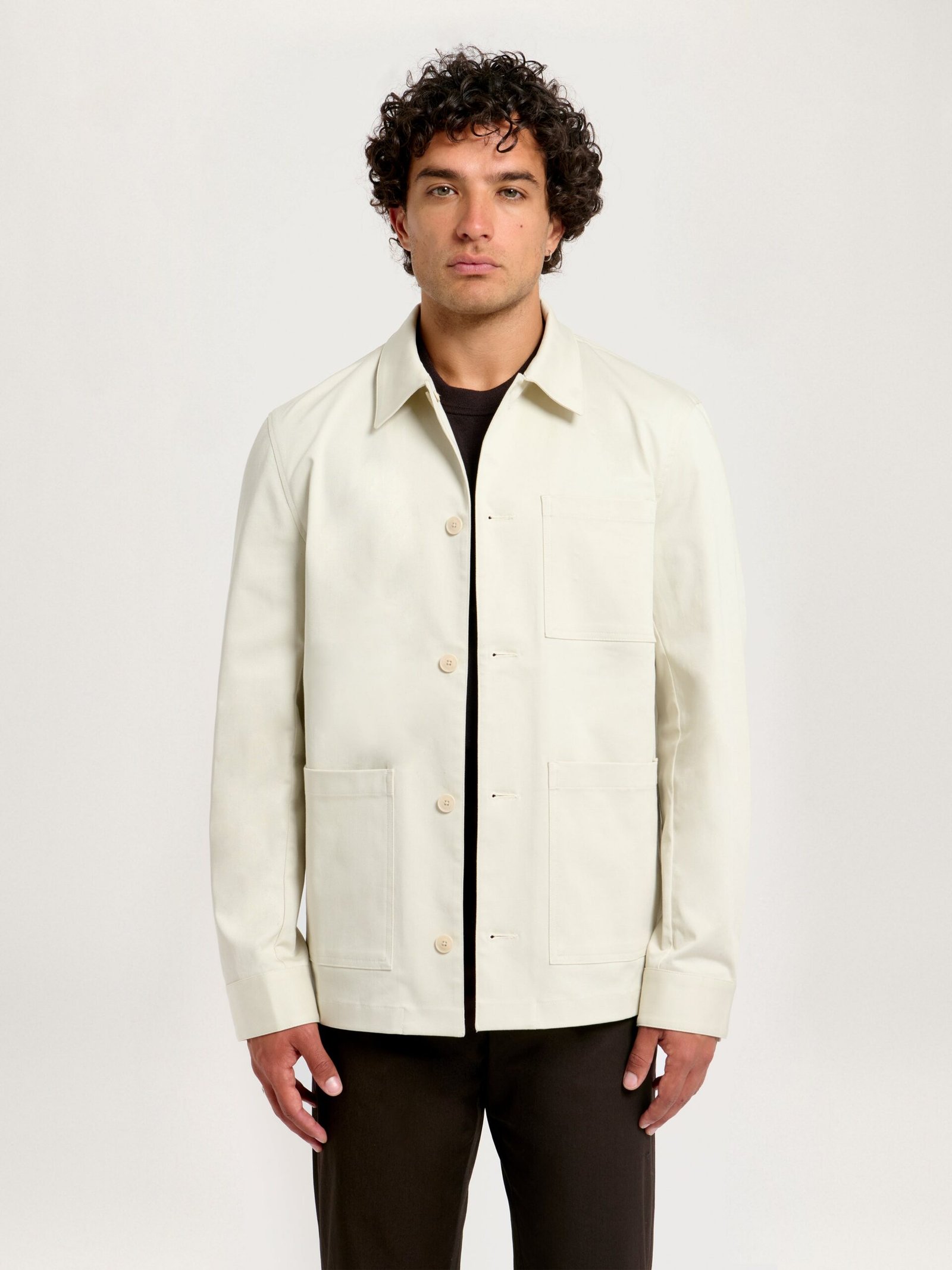 A quintessential chore jacket with a streamlined, modern design crafted from a durable, stretch 100% regenerative, heavyweight cotton twill. Designed in a regular fit with three utilitarian front pockets. Natural corozo nut button closure completes this staple. Wear with the Classic Tee and Heavyweight 24 Trouser to complete the look.