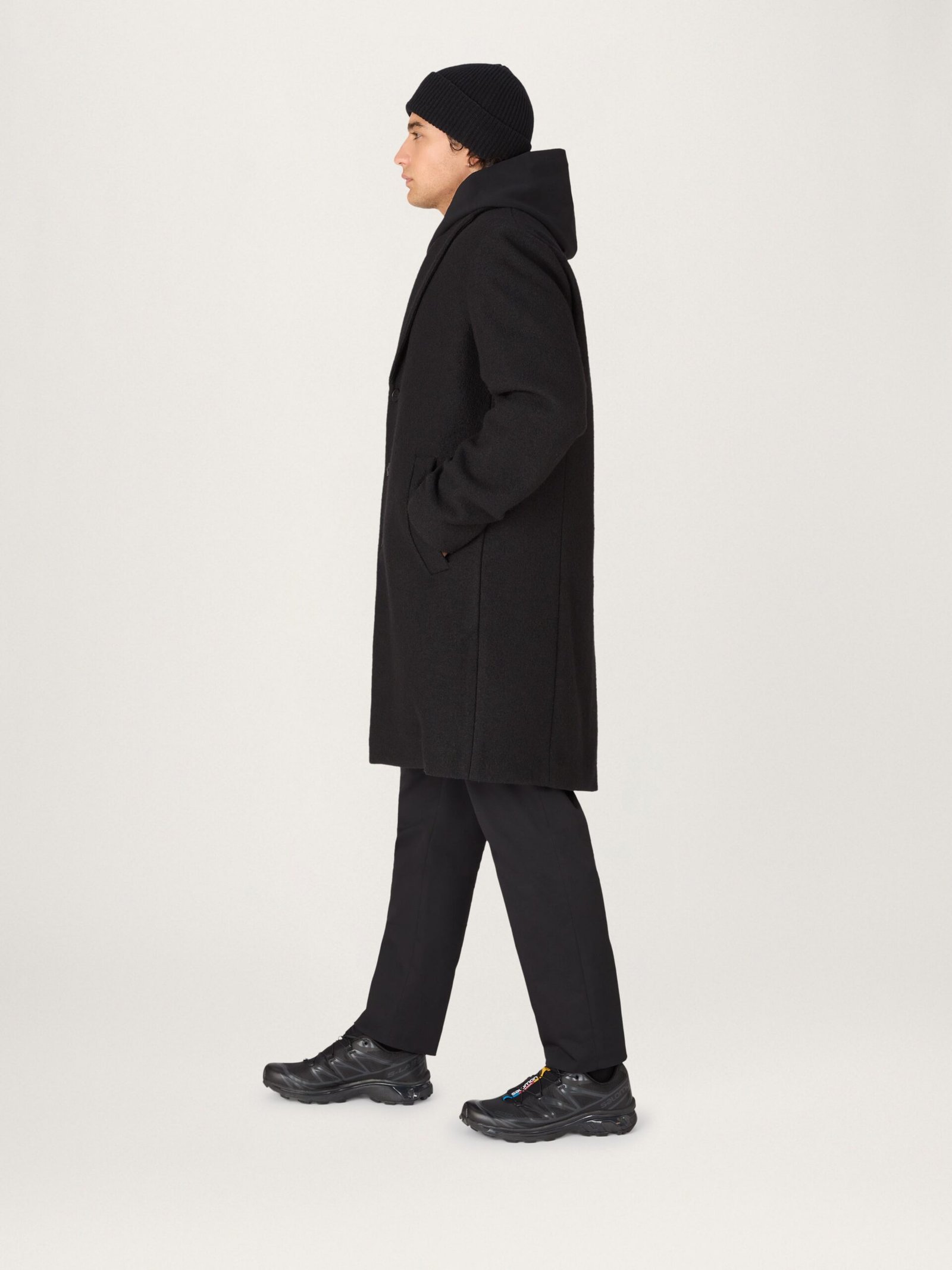 Crafted from soft, textured boiled wool, woven in Italy, it provides exceptional insulation against winter temperatures. Unlined with bound seams for a relaxed and comfortable fit and quality craftsmanship inside and out. Designed with corozo nut buttons, hidden welt pockets, and pointed lapels.